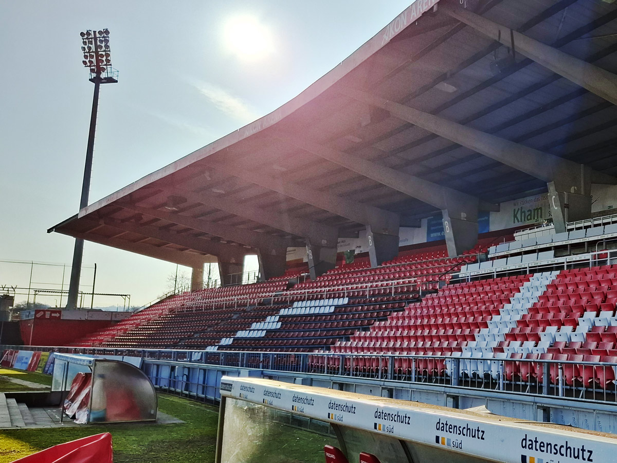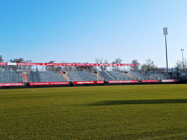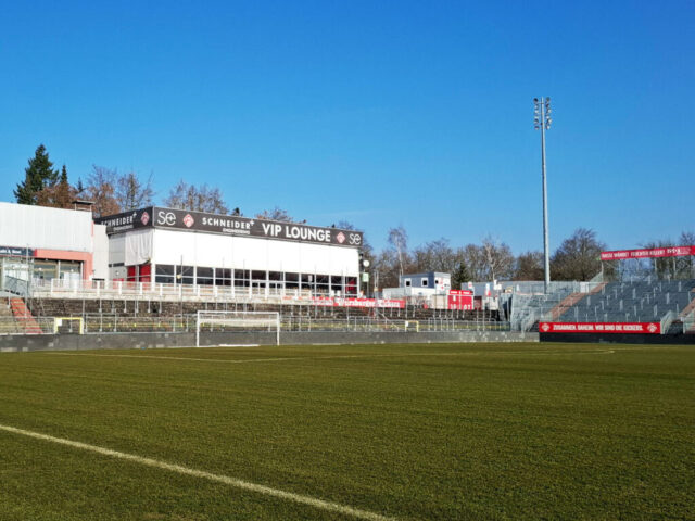 Am Dallenbergbad angekommen, liefen wir über den Parkplatz am Dallenbergbad vorbei und dort konnten die Kinder zum ersten Mal die Flutlichtmasten und die Treppen zum Stadion der Kickers sehen. Wir wurden vor dem Eingang schon vom Verantwortlichen für Partnerschaft & Vermarktung + Spieltagsleiter Ole Linseisen erwartet, der uns an diesem Tag durch das Stadion und die Kickers Spielstätte führen sollte.