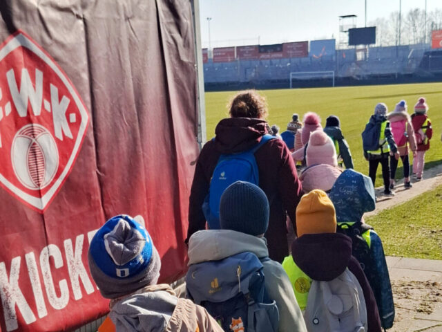 Am Dienstag, den 03.03.2026, besuchten die Delfinkinder das Kickers Stadion in Würzburg am Dallenbergbad.