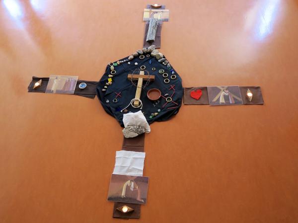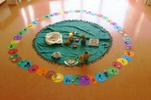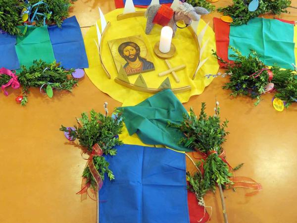 Das Ende der Fastenzeit war geprägt von Jesusgeschichten, Erfahrungen vom Abschiednehmen und Erwachen. Die Geschichte des Miteinander Essen beim letzten Abenmahl und vom Leid und Tod Jesu (Karfreitagsgeschen) waren gerade für die Kindergarten- und Schulkinder sehr bewegend. Die Kinder haben aufmerksam gelauscht und ihre Sorgen, ihre Gefühle im Legen des Mittelbildes ausgedrückt (s. Fotos).