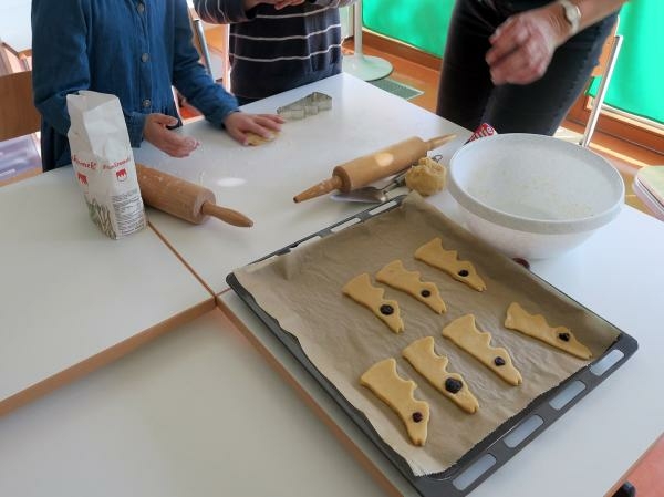 Die Schulkinder waren außerdem fleißig dabei die Osterkerze, unsere neue Jesuskerze für dieses Kirchenjahr, zu gestalten, Eier zu verzieren und zu backen.
