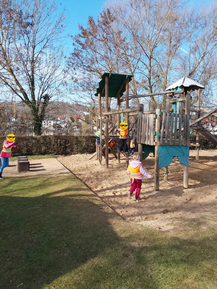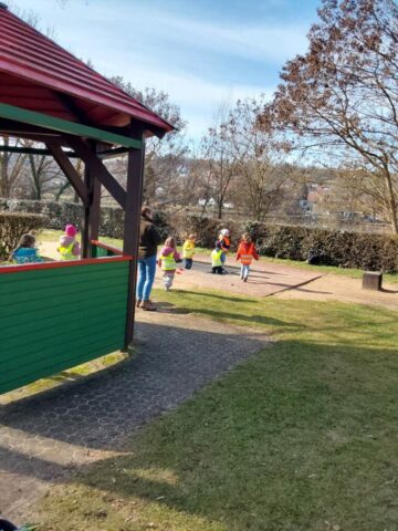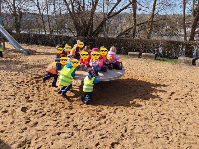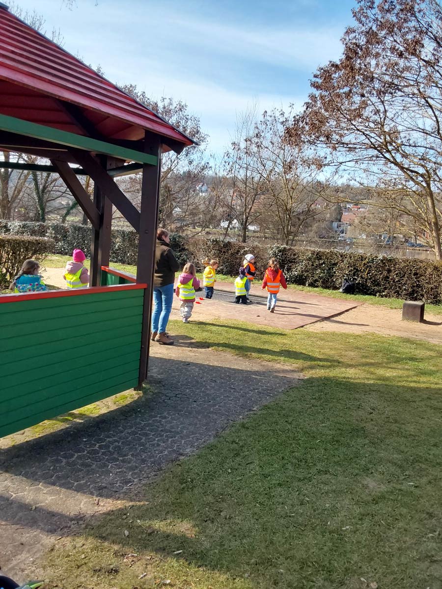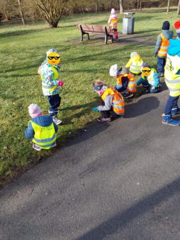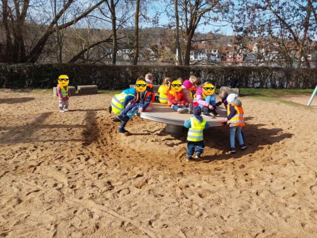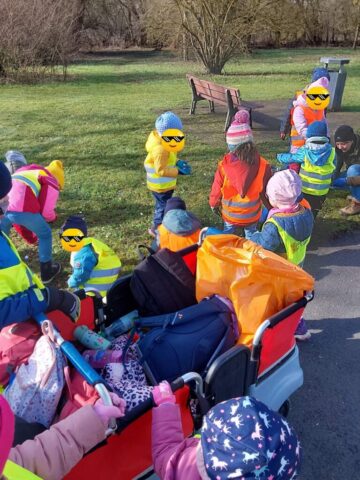 Während die Eltern im Garten fleißig waren, alle Büsche zurück geschnitten hatten, die Fallschutzbeläge abgestrahlt hatten, die Schaukelhalterungen frisch einbetoniert hatten, in den Garderoben der Kindergartenkinder gearbeitet hatten, ein leckeres Buffet für alle Helfer vorbereitet hatten und noch vieles mehr, gingen die Kinder mit Erzieherinnen los, um für die Aktion Putzmunter Müll in Veitshöchheim einzusammeln.
