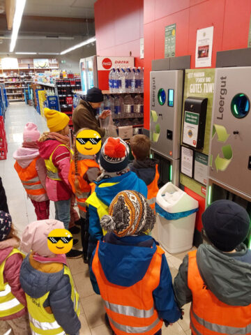 Durch den Hofgarten, am Haus St. Hedwig, beim Rewe, auf dem Weg am Main entlang, an den Mainfrankensälen und am Spielplatz konnten wir Müll und sogar Pfandflaschen entdecken. Diese wurden beim Rewe gleich abgegeben und vom Pfand durften sich die Kinder auch etwas aussuchen. Die Wahl fiel auf Esspapier, welches wir gleich probierten. Den Abschluss konnten wir auf dem Mainspielplatz in der Sonne genießen mit Salzbrezeln und Gummibärchen.